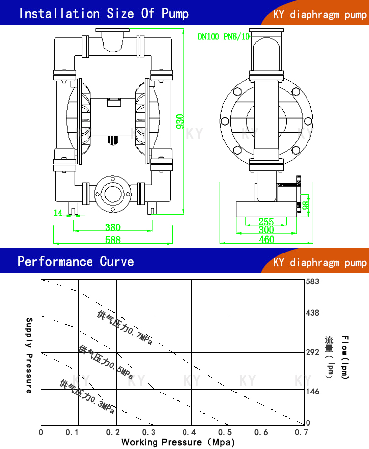 8、QBY-K100LC氣動隔膜泵通過性能好,允許通過最大顆粒直徑達10毫米。