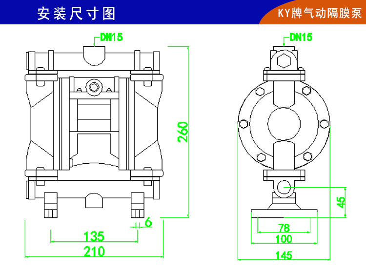9、KY牌鋁合金氣動隔膜泵整體構(gòu)造上更加優(yōu)化,泵腔和主管路都有明顯加強(qiáng),自吸功能和流量揚(yáng)程都有很大改善。