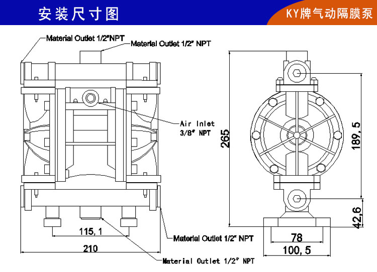 3)、KY-15SF微型氣動泵最大的特點是供氣壓力在0.1Mpa以上就可以正常啟動(老型QBY型氣動隔膜泵供氣壓力需要0.5Mpa以上才可以正常運轉(zhuǎn)),不用再為氣動設備多導致氣壓不足而停機。